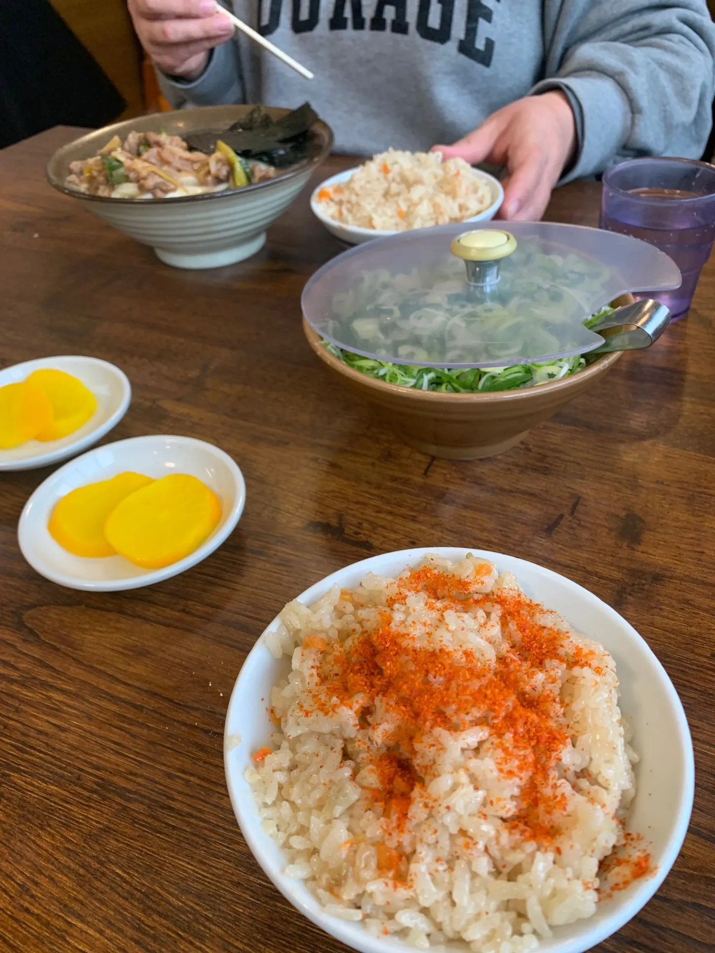 店内では、相変わらず、普段通りに「かしわ飯」も注文しまして、少し辛くしたところです。