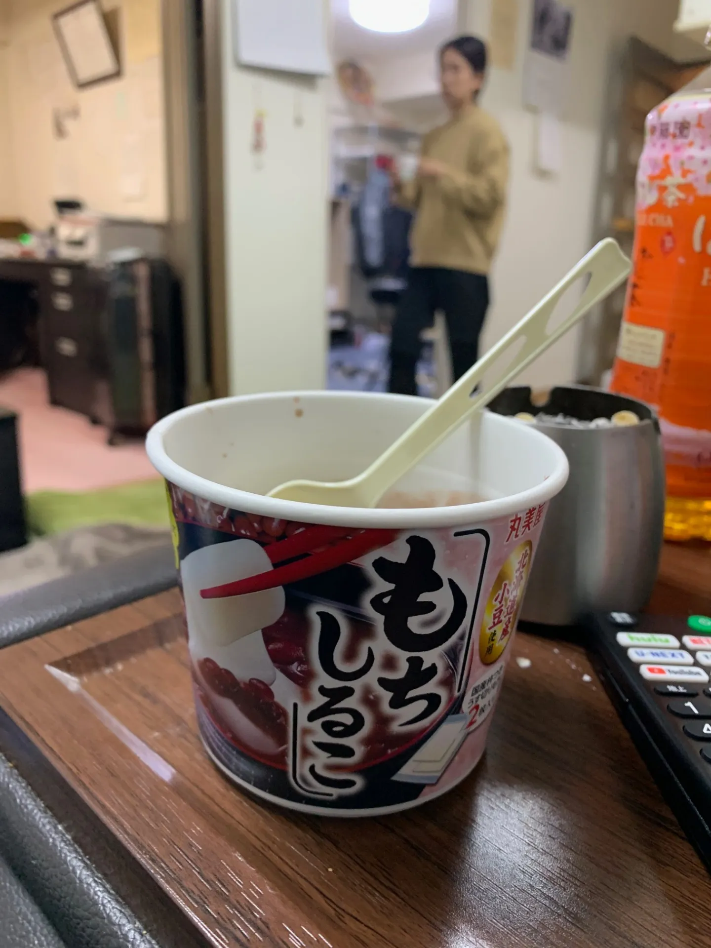 事務所内を探しておりますと、ぜんざい(おしるこ)の餅入りがありましたので