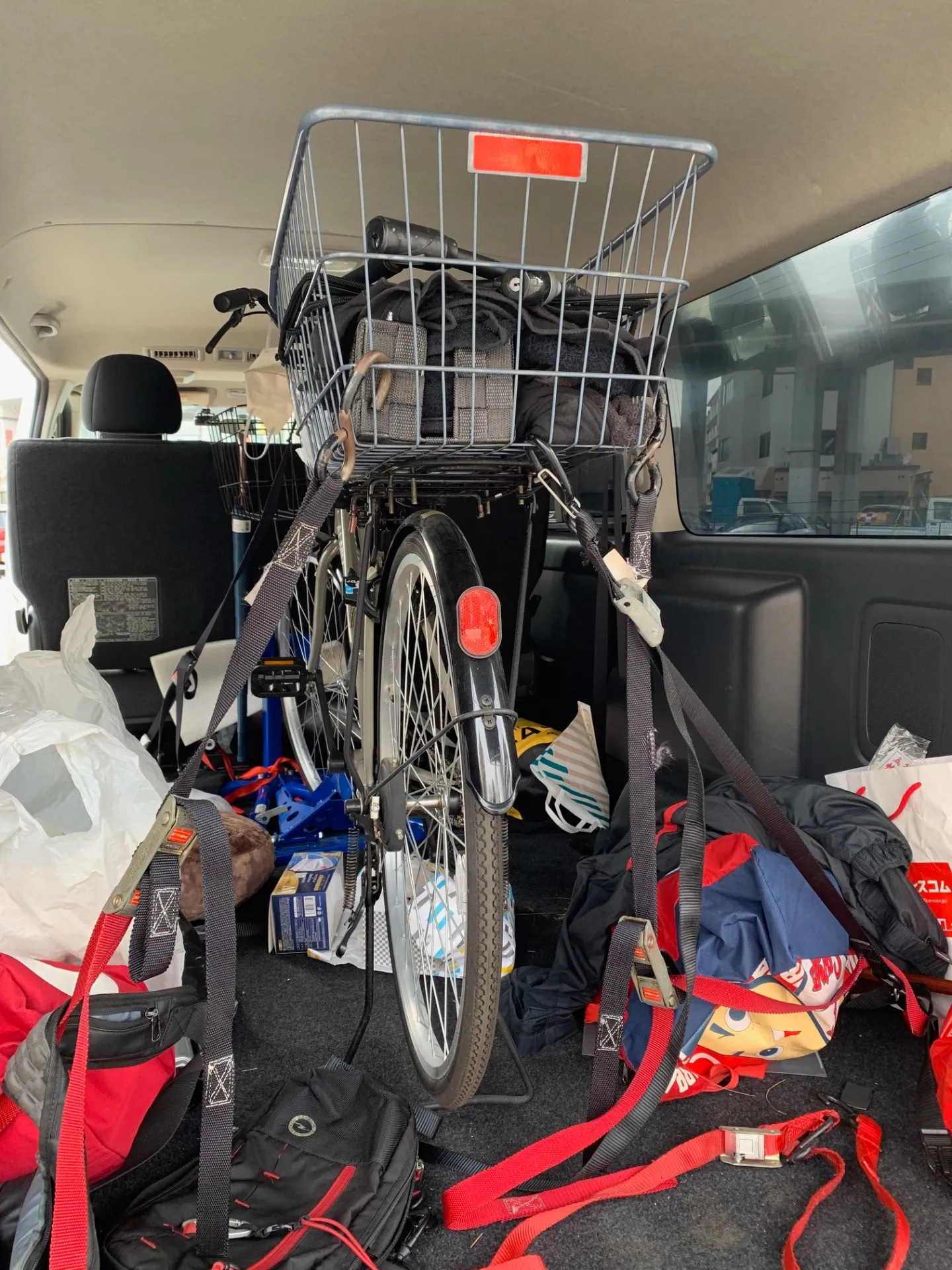 ここに来る直前には、調査で使用します自転車を車両に積載してまいりましたが