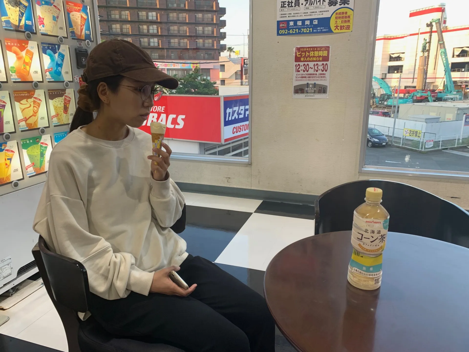 「アイスを食べたい」と言い出しまして、自販機で購入していました。