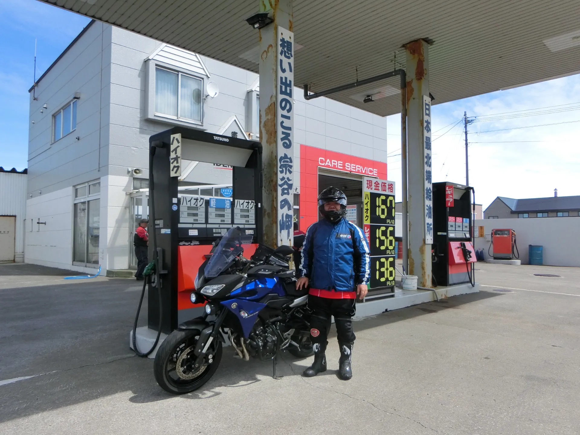 最北端の給油所で給油している場面です。