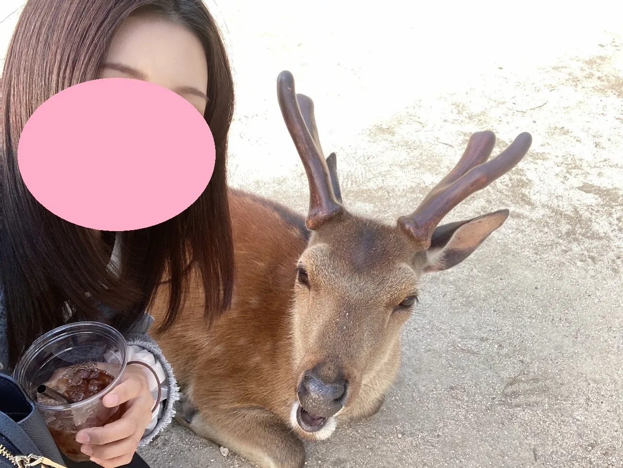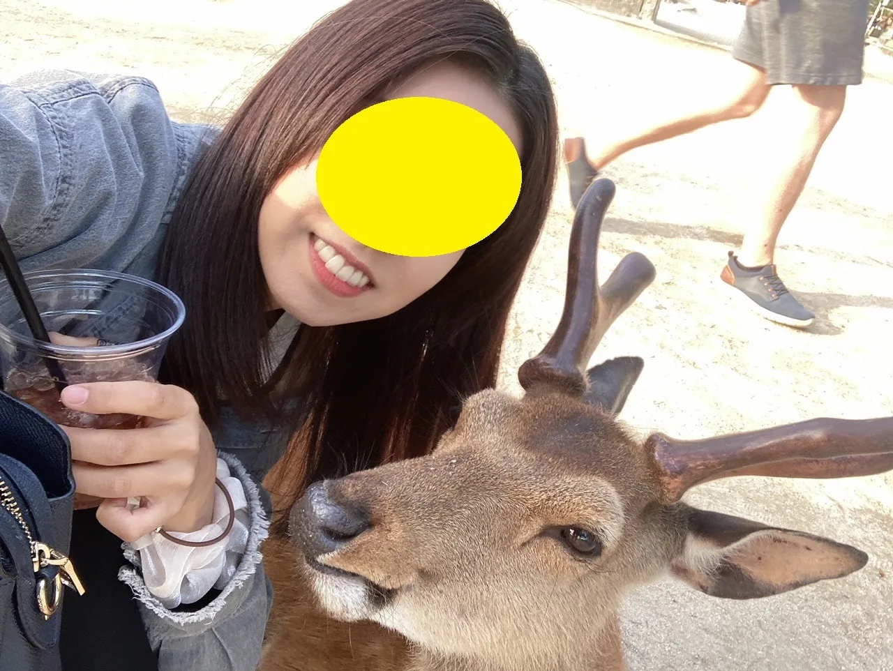 このような笑顔は好きですね。彼女も鹿君もいい表情をしていると思います。
