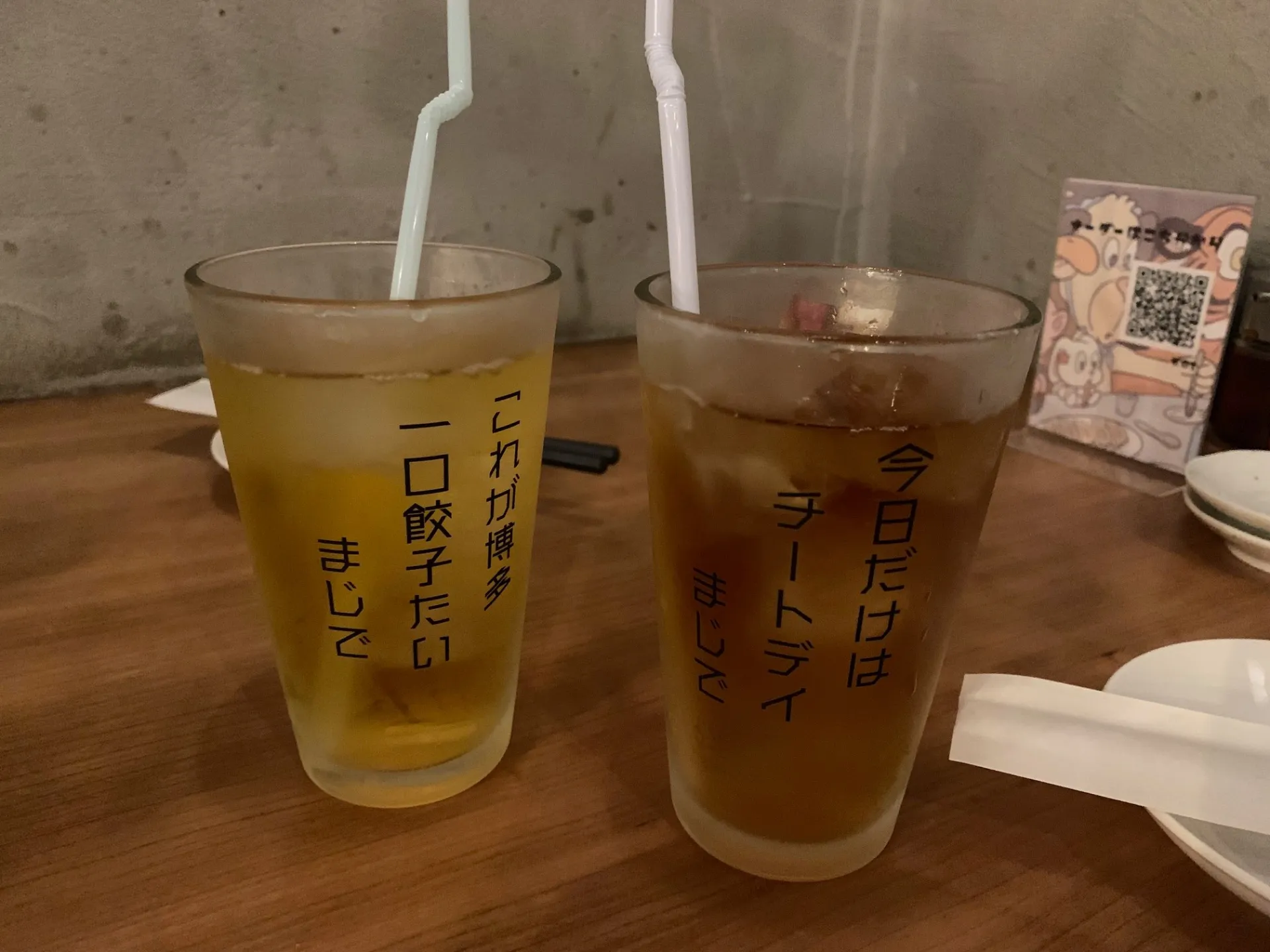 彼女は、このお店のグラスに書かれている言葉が好きでして