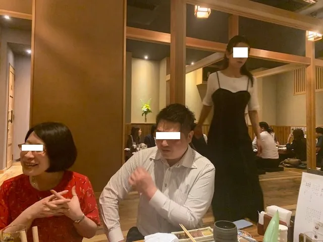 さて、ここで下写真を見ますと、同じテーブルの3名が見えます。