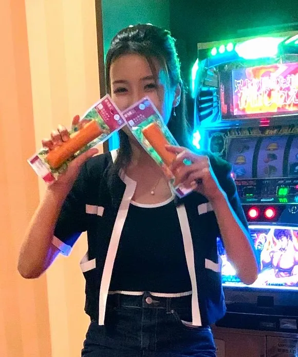 手に持っているものは、車内において彼女が備蓄しています食料になります。