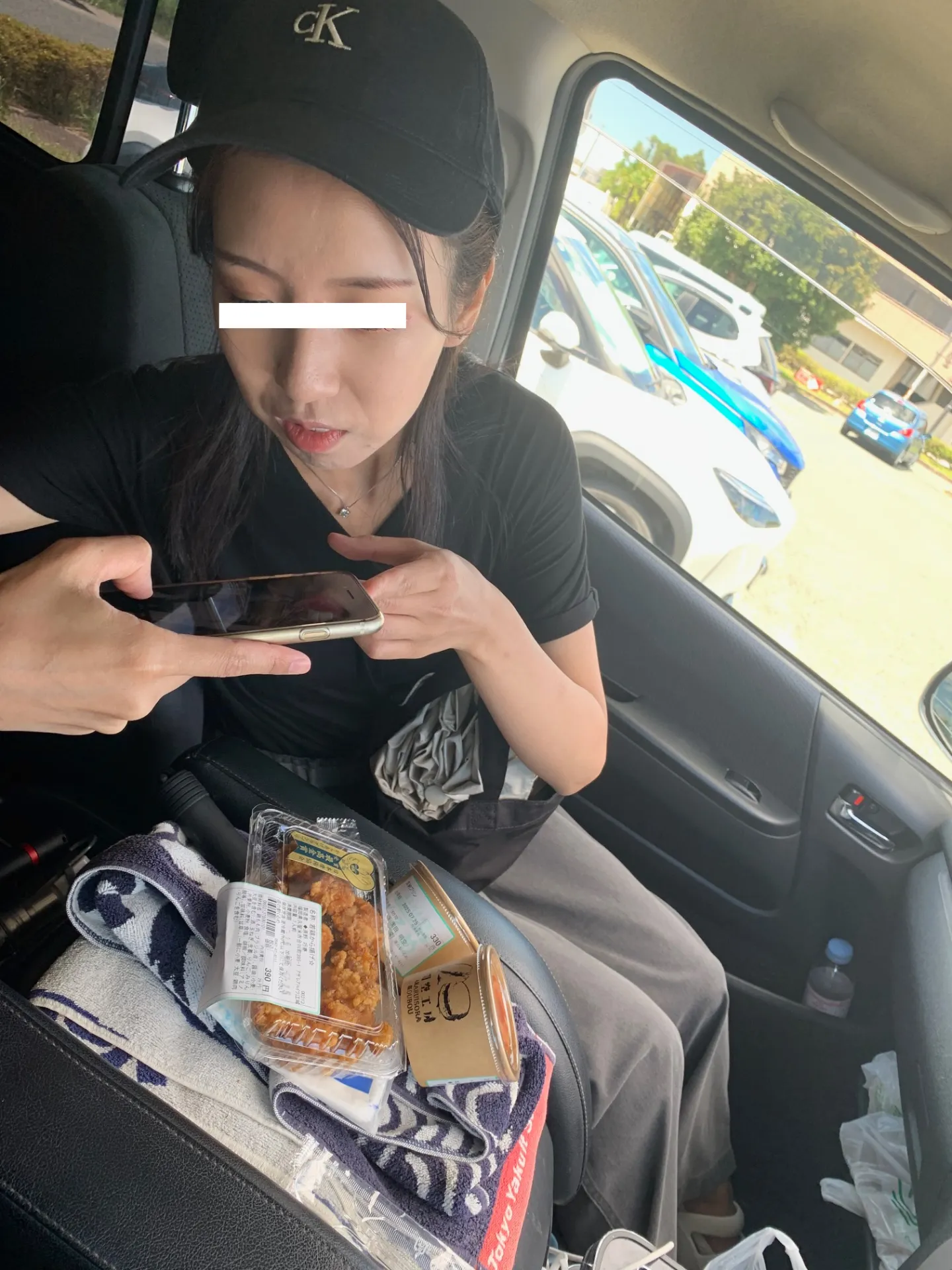 本人も必死の美人隠しをしますので、ここでは目隠しをしたままに