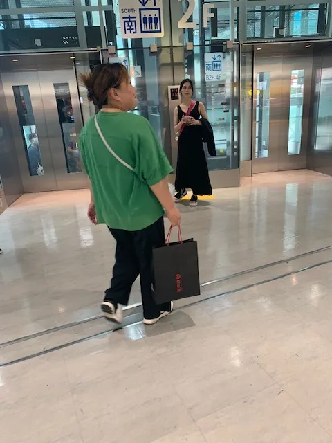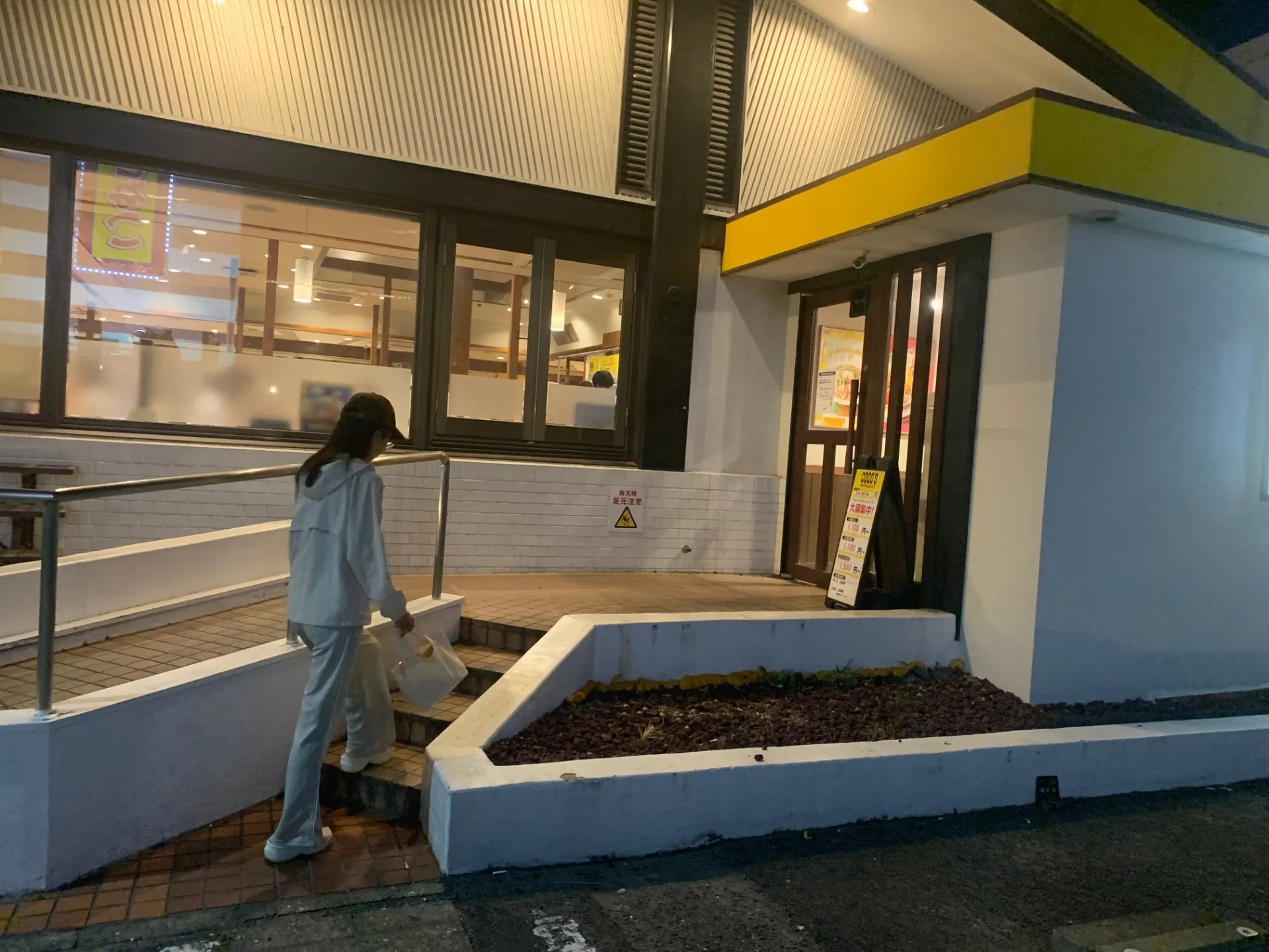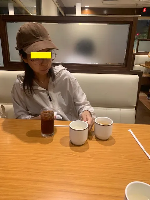 元気にファミレスに入っていくユイさんが撮影されています。