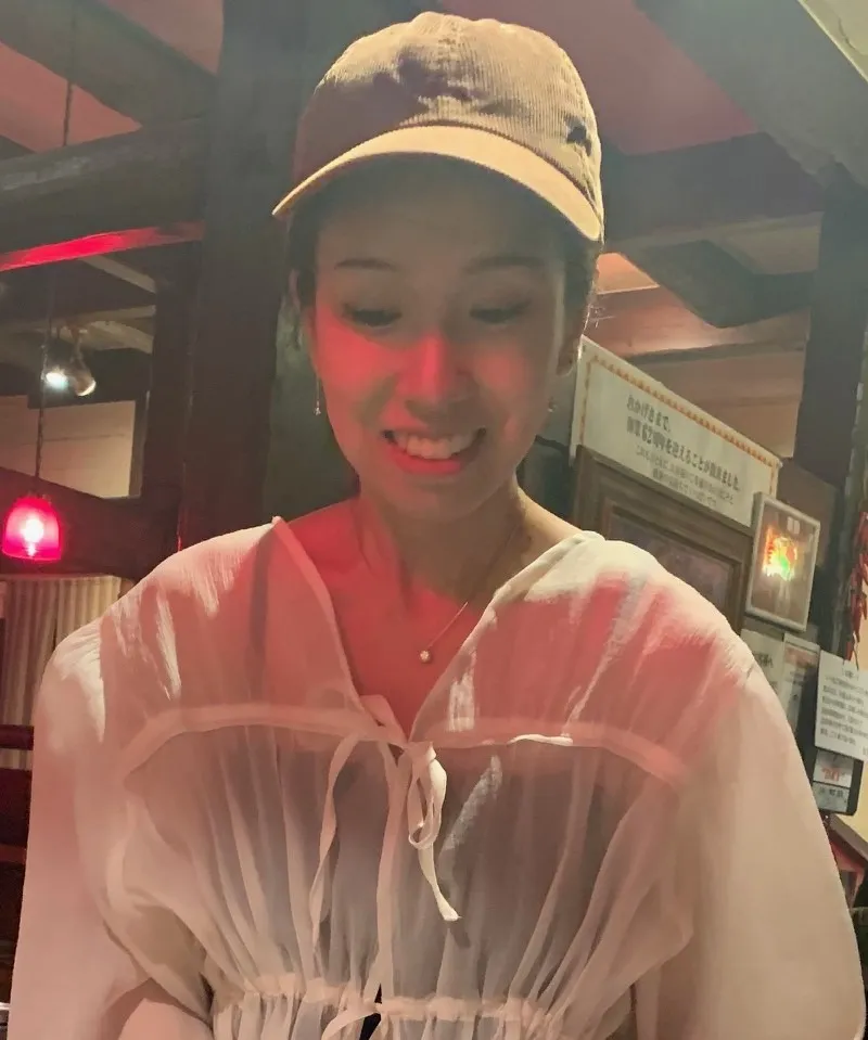 打ち上げの会でいつもと違った表情を見せてくれている探偵スタッフのユイさんですね。