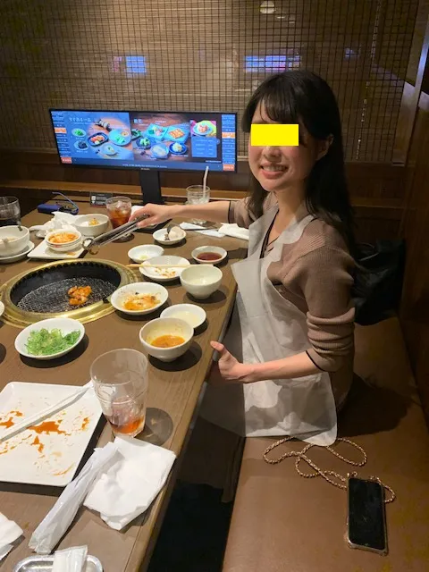 きれいな形で終了させましたので、ご褒美の焼肉店での打ち上げ場面です。
