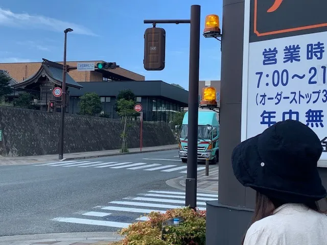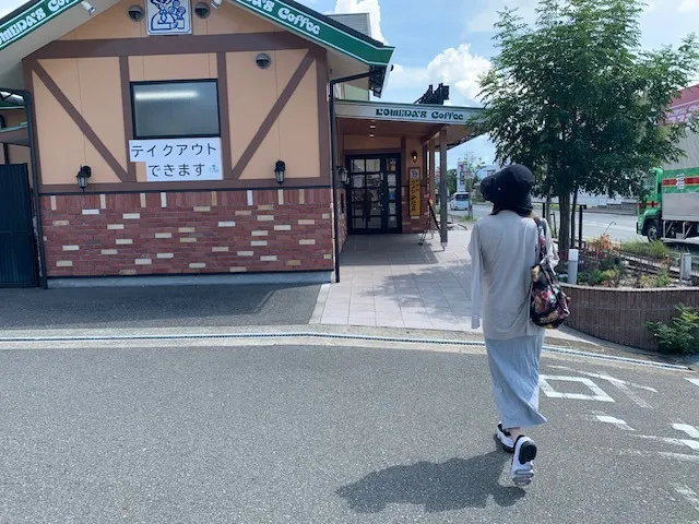 暑さ対策、日射対策をして外を歩いているケイさんが見えます。