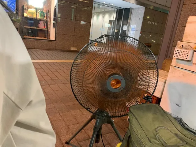 後方に大きな扇風機がいつの間にか用意されていました。