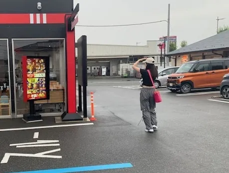 元気にお店に入っていくケイさんが見えています。