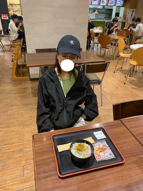 食事は軽く、ミニ丼を注文しました。
