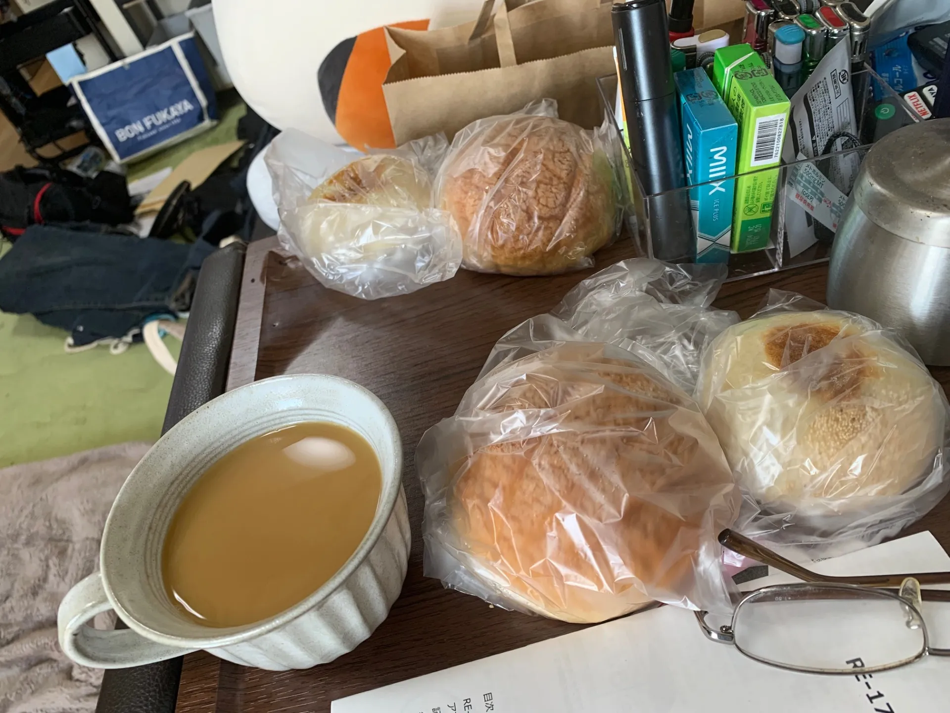 上が彼女が買ってきてくれたパンとコーヒーですね。