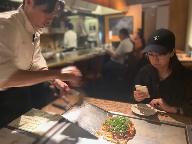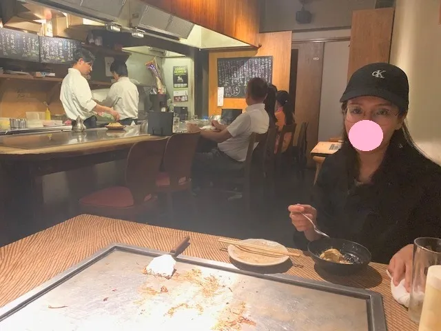 お好み焼きを運んでいただき、あっという間に2人とも平らげております。
