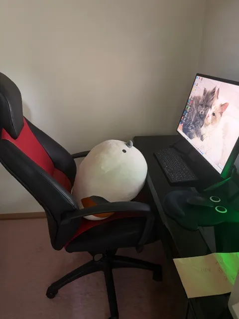 さて、外出、または出動という際の彼女は自席に「シマエナガ」のぬいぐるみを座らせます。