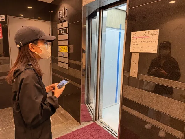 彼女は対象者の訪問先を確認後、本箇所に戻り、死角側から次の動きを考えているという場面です。