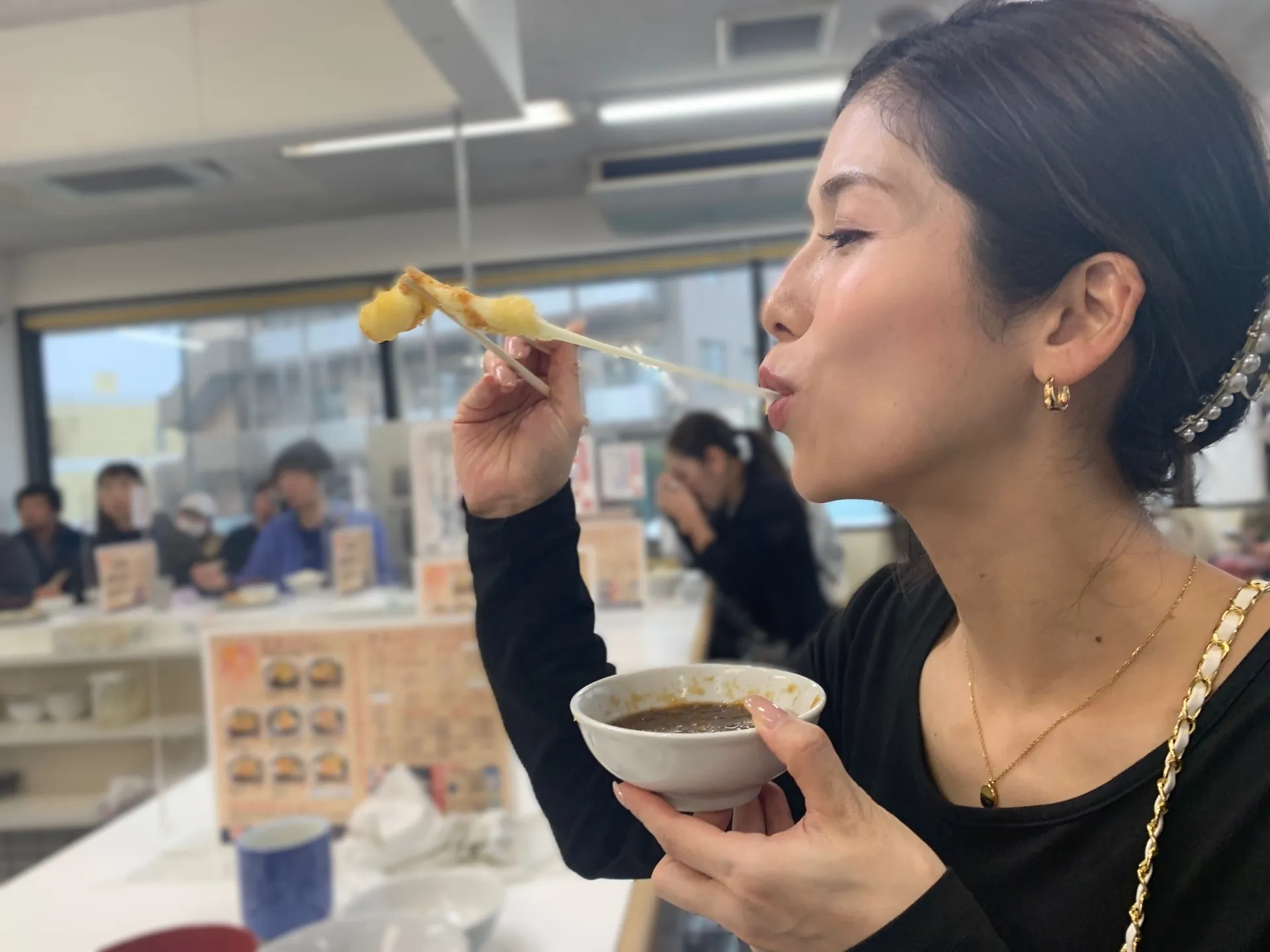 天ぷら屋さんでチーズを伸ばして遊んでみたり