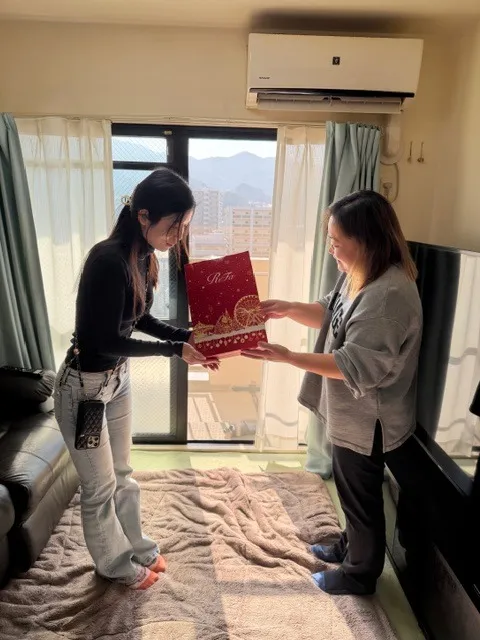 こちらは、❤ゆかり❤さんが誕生日プレゼントをケイさんに渡している場面です。
