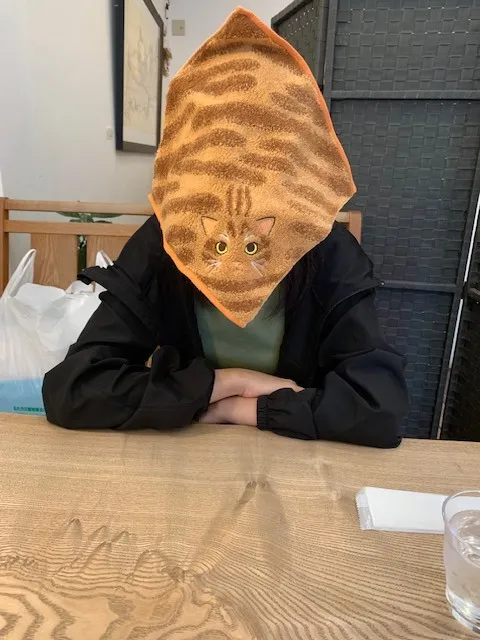 購入したばかりのネコハンカチ。