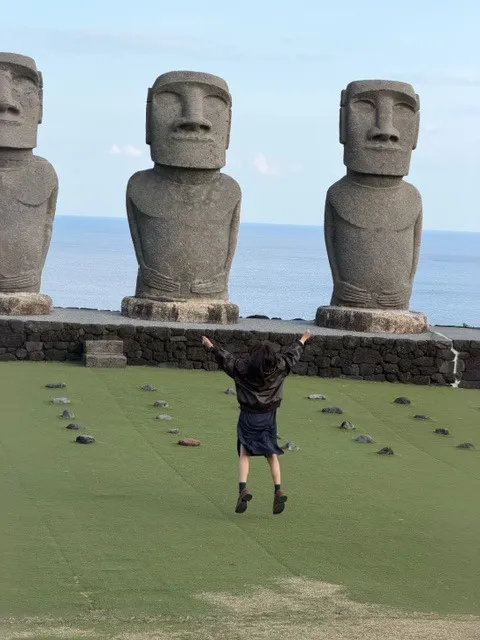 さて、次の訪問先ですが、現地にはモアイ像がありました。
