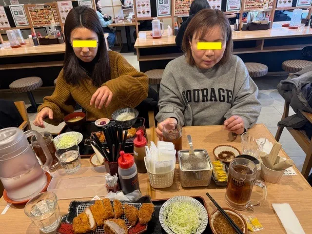 吉塚駅付近では、ユイさんの希望もあり、トンカツをいただいて