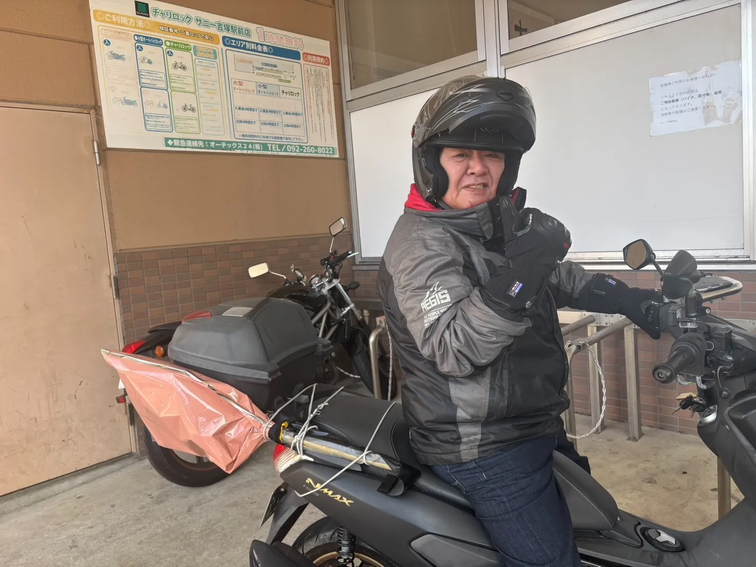 「これはバイクでは運べないから、タクシーで福岡空港前事務所に置きに行き