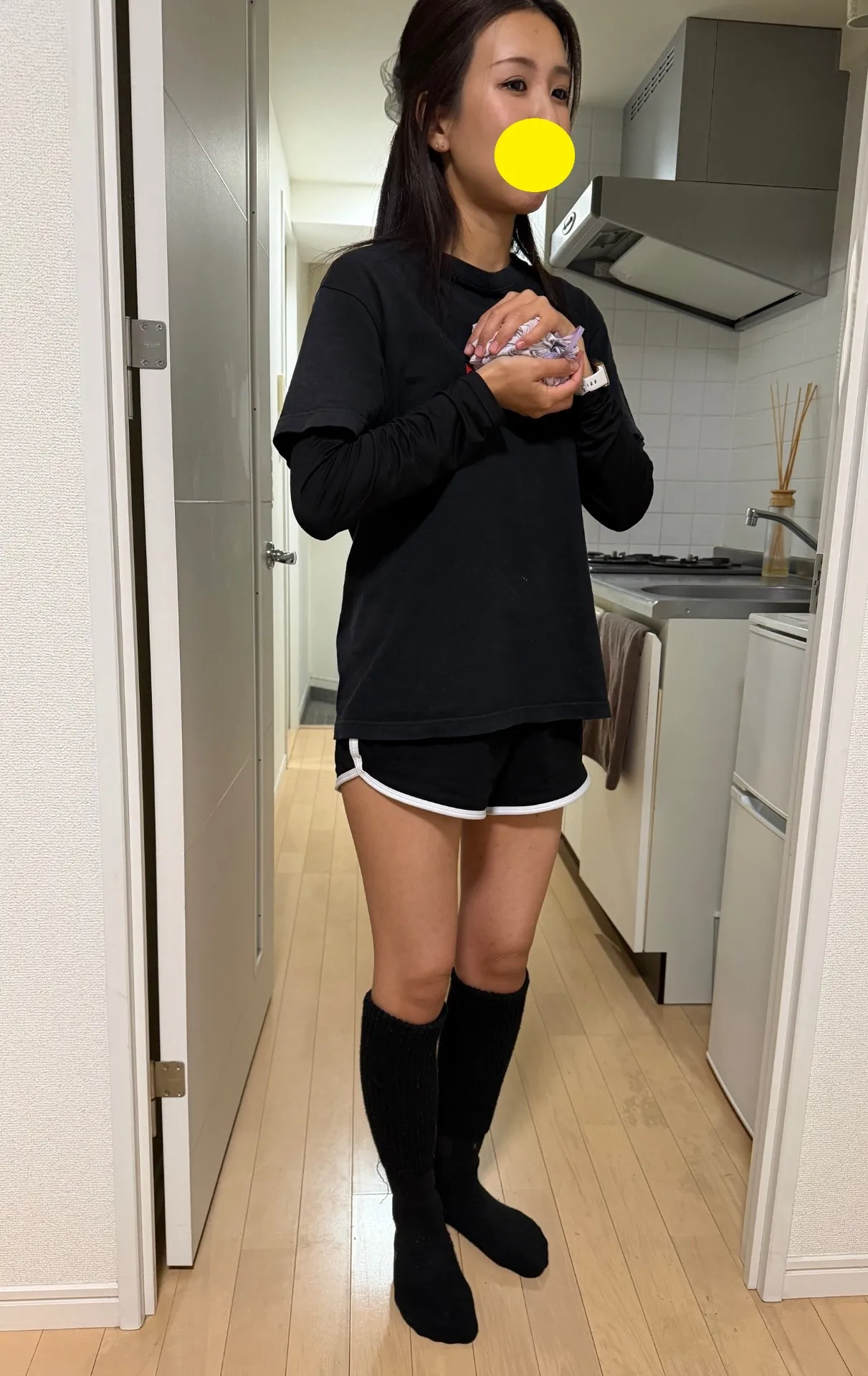 「今は外ではこんな格好はできないですが、スポーツ後みたいに見えますかね?」