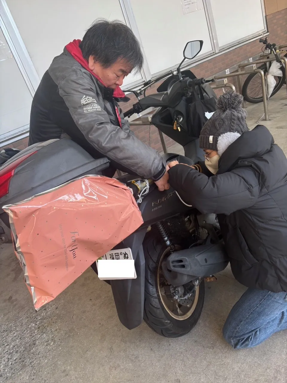 バイクへの取り付けは、ほとんど彼女がやっておりましたが