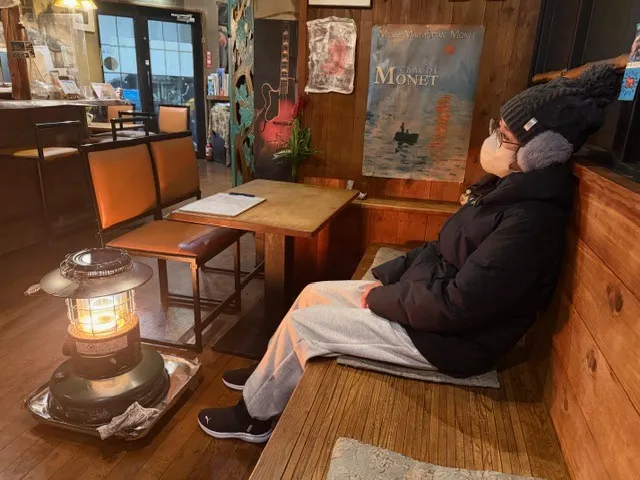ストーブの火が暖かくて、眠くなりそうですが