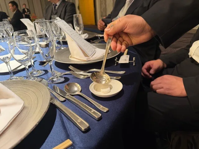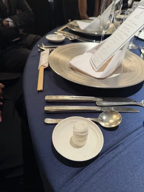すぐに係の方がテーブルをまわって、そこのお皿に水をいれていくのです。