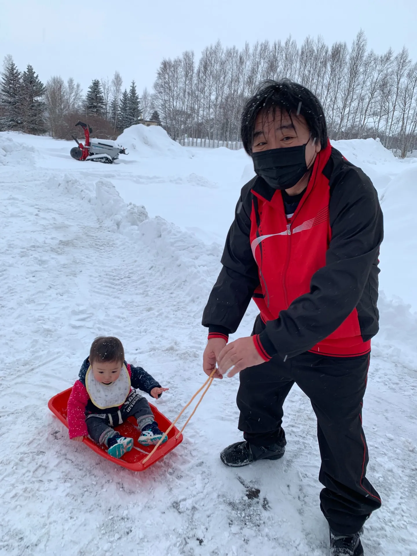 まず真下の写真は、❤ゆかり❤さんの長男君をソリで引っ張っている自分になります。
