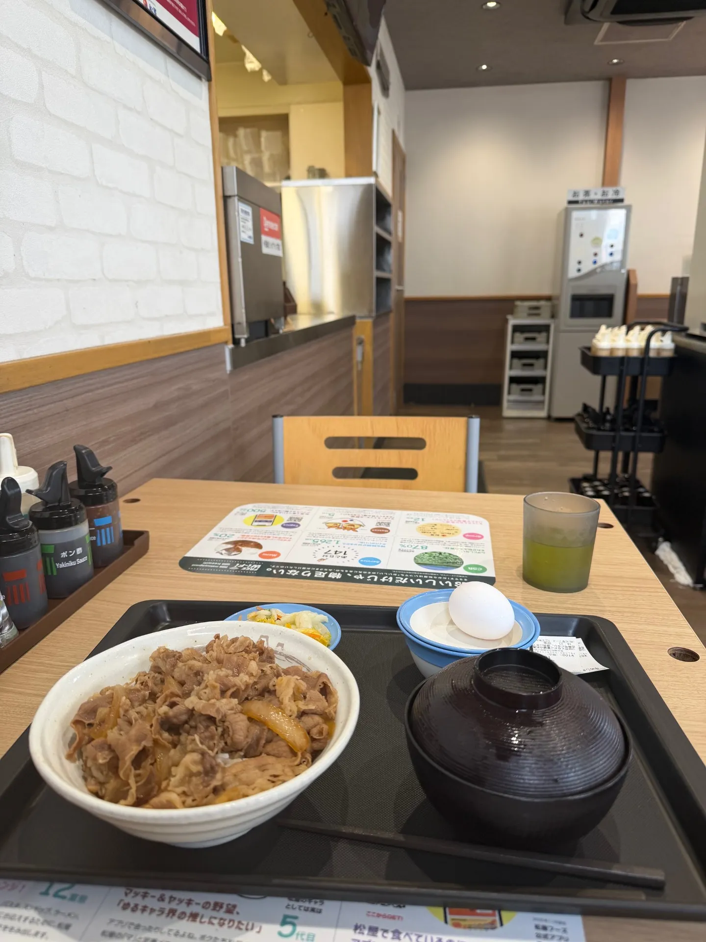 さて、出発前、ある牛丼屋さんで食事をしました。