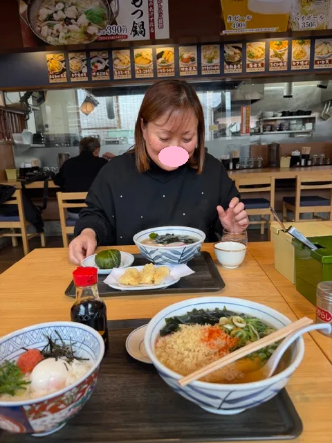 さて、下写真は、本日、篠栗駅前事務所に移動する際の日中の食事場面です。