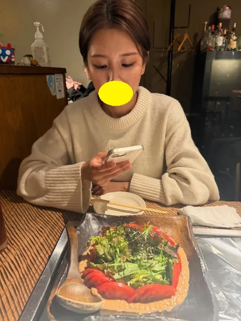 という彼女の提案で豆腐、トマトを主体としたサラダを注文した場面ですね。