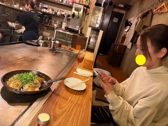 お好み焼きのお店に向かいました。