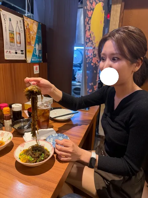 美味しくいただいて、真夜中2時半過ぎに〆のモズクをいただいている場面が下になりますね。