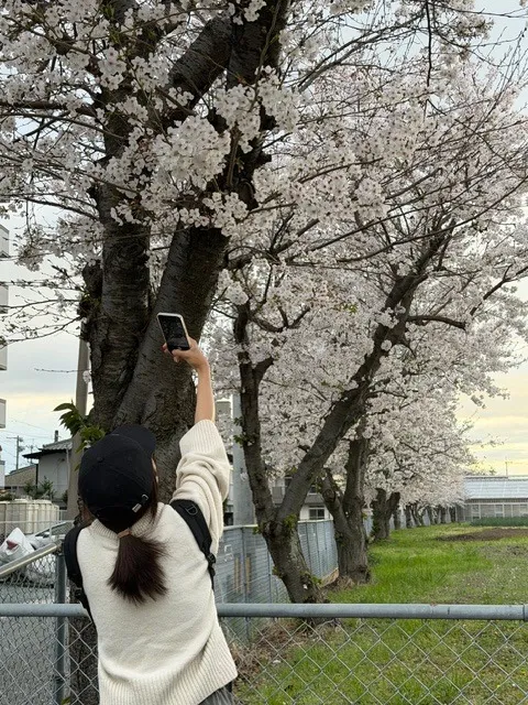 桜が咲いていますが、強風下でしたので、散ってしまいそうだと思いまして