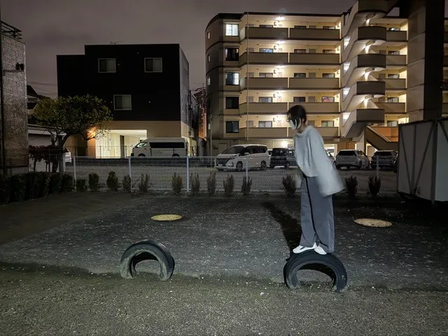 ここでは、タイヤを飛んでいくユイさんが写っていますね。