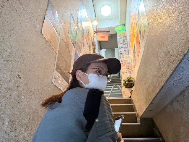 また、小さな階段を上がりながら、不安そうな表情を見せるユイさんも撮影しております。
