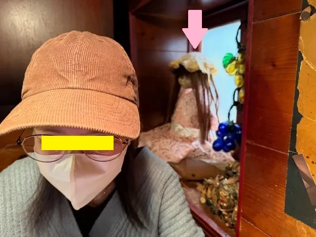私は、後方の人形にずっと見つめられているみたいです