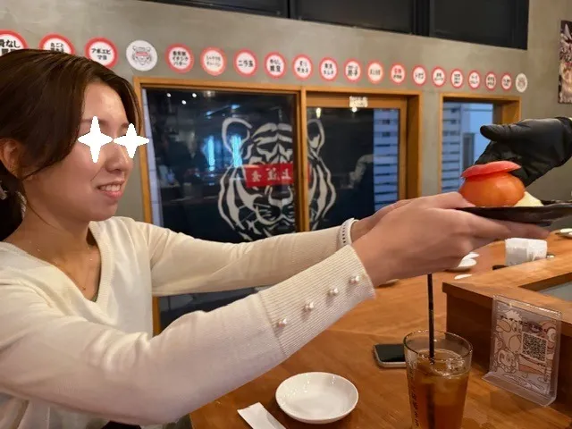 同行スタッフのユイさんは定番のトマトスライスからスタートですね。