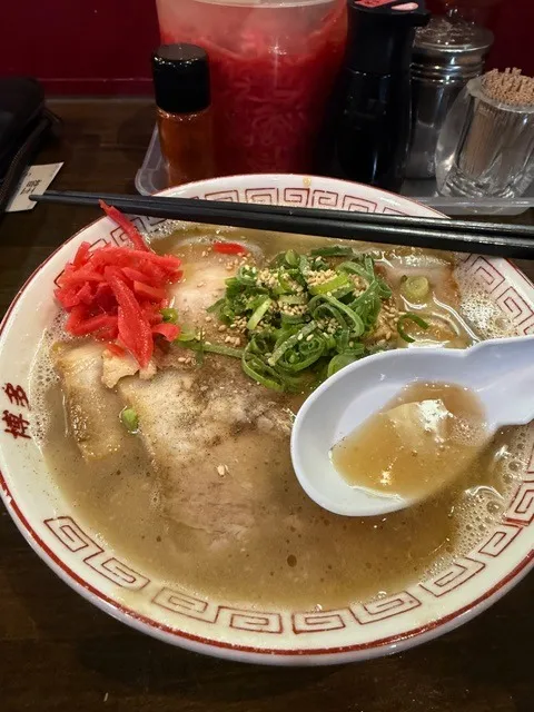 下写真が自分の注文分となるチャーシュー麺なのですが、今回も「ありがたい攻撃」を